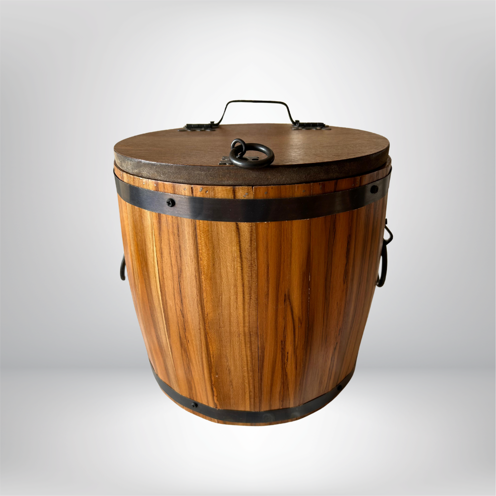 Cada hielera es elaborada con esmero por artesanos expertos, asegurando una calidad insuperable y un acabado impecable. El diseño, que combina funcionalidad con una apariencia sofisticada, convierte a esta hielera en un accesorio perfecto para cualquier evento, ya sea una reunión al aire libre, una fiesta en casa, o un día de campo. La tapa, completamente lisa, añade un toque de simplicidad elegante, complementando el cálido y rico tono de la madera de teca.