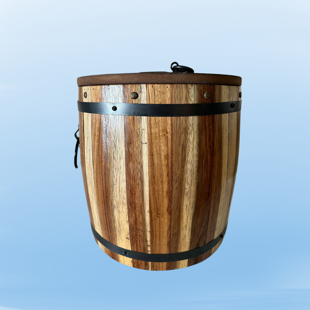 Su diseño artesanal y acabado natural realzan la belleza de la madera, haciendo de esta hielera un elemento distintivo en cualquier evento. Además, su capacidad de 19 litros es suficiente para almacenar una buena cantidad de bebidas, manteniéndolas a la temperatura ideal durante horas.